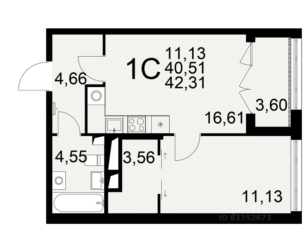 Общая площадь40,51 м2