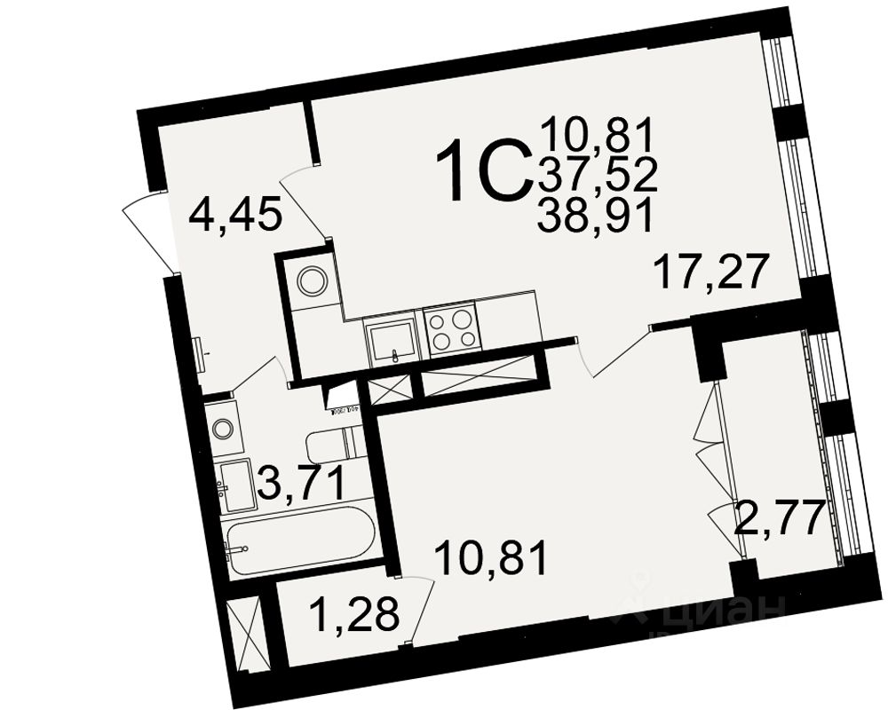Общая площадь37,52 м2