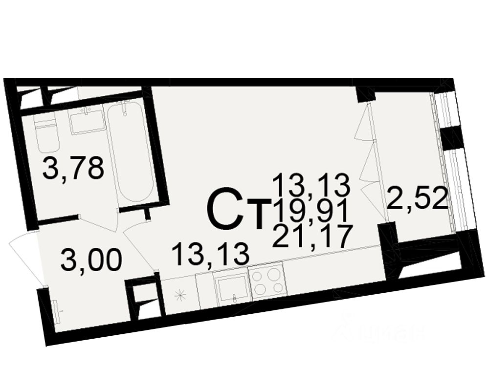 Общая площадь19,91 м2