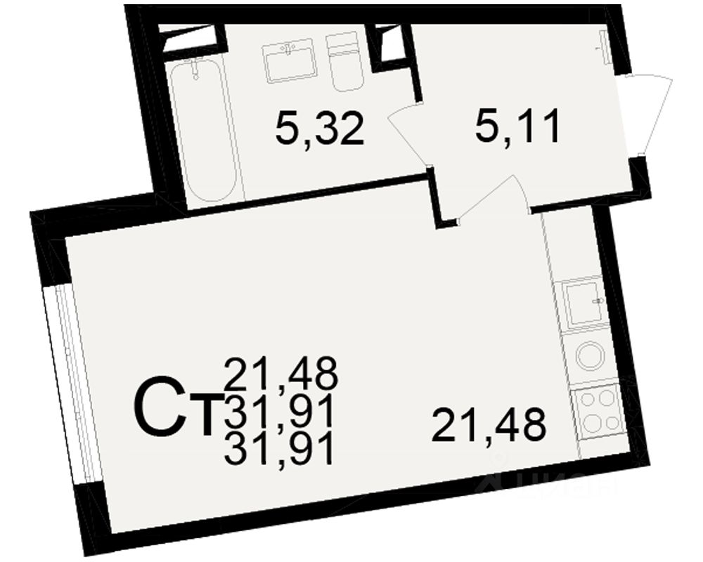 Общая площадь31,91 м2