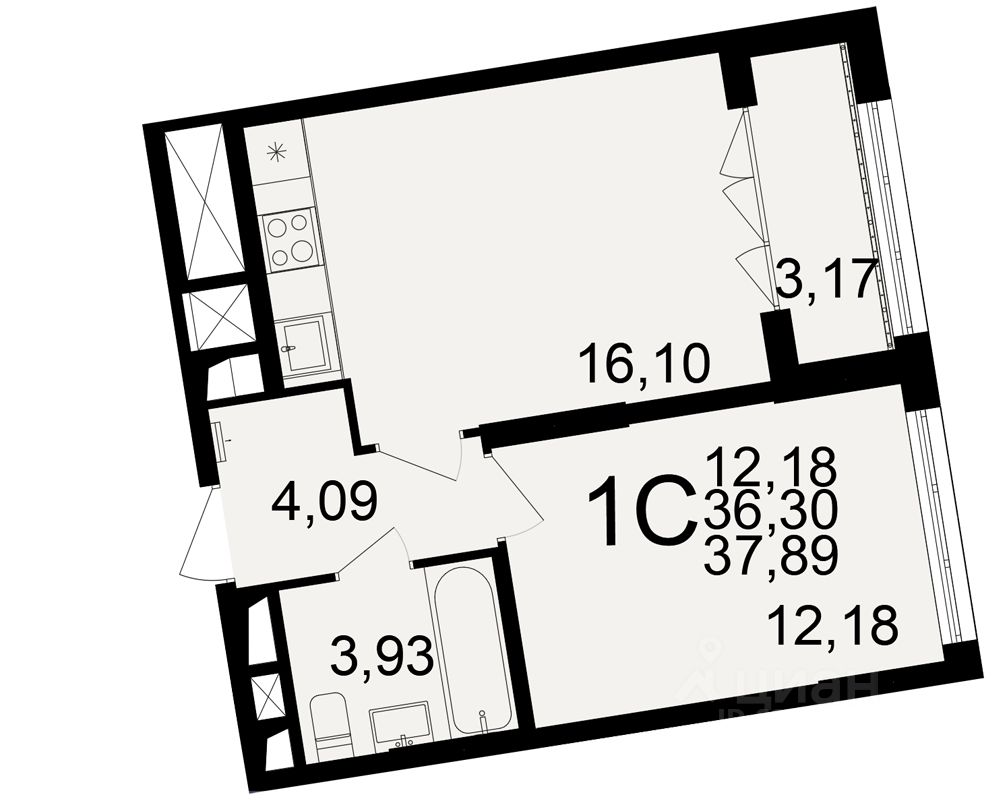 Общая площадь36,3 м2