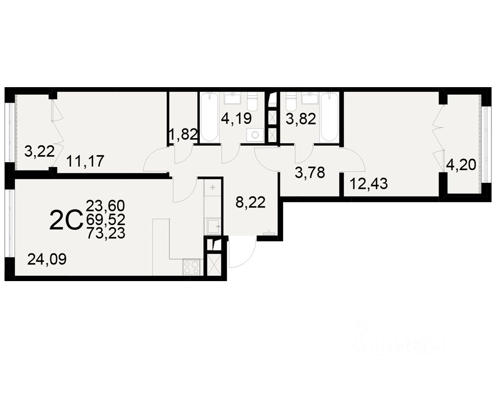 Общая площадь69,52 м2