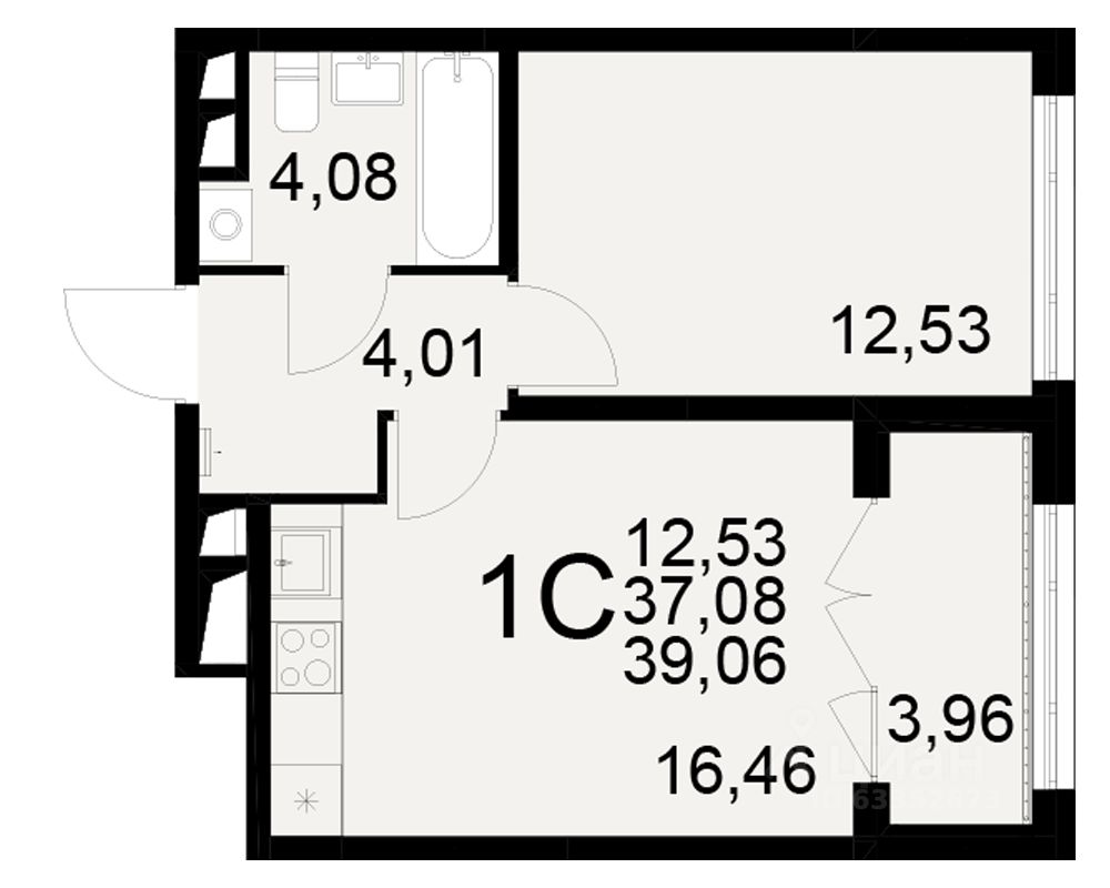 Общая площадь37,08 м2