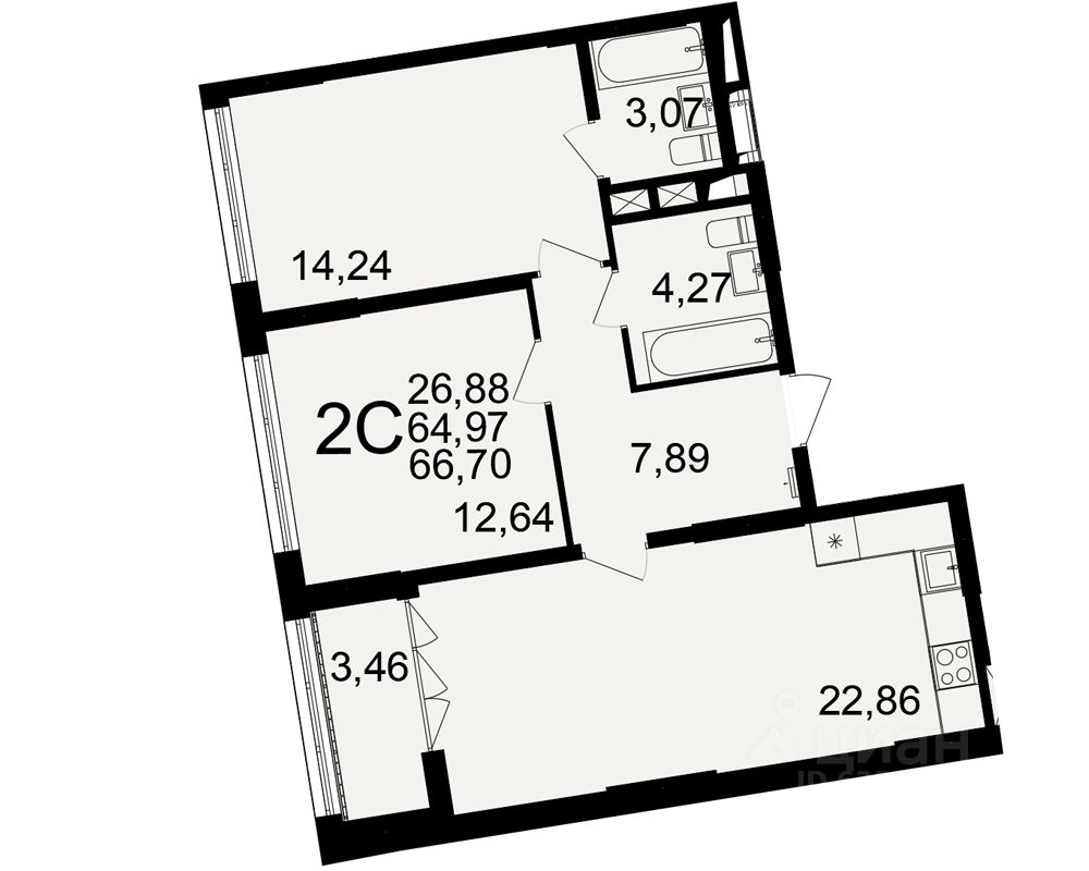 Общая площадь64,97 м2
