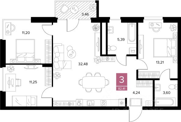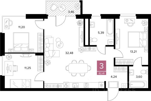 Общая площадь82,41 м2