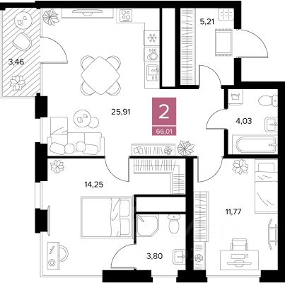 Общая площадь66,01 м2