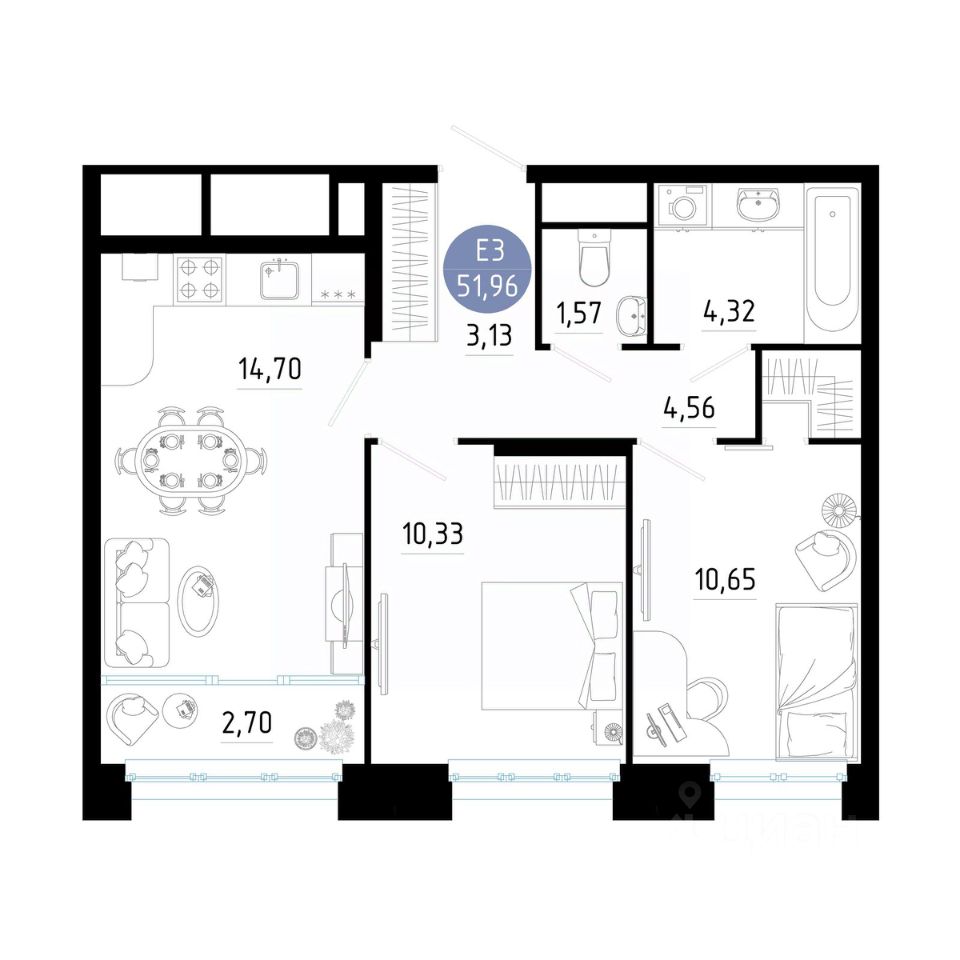 Общая площадь51,96 м2