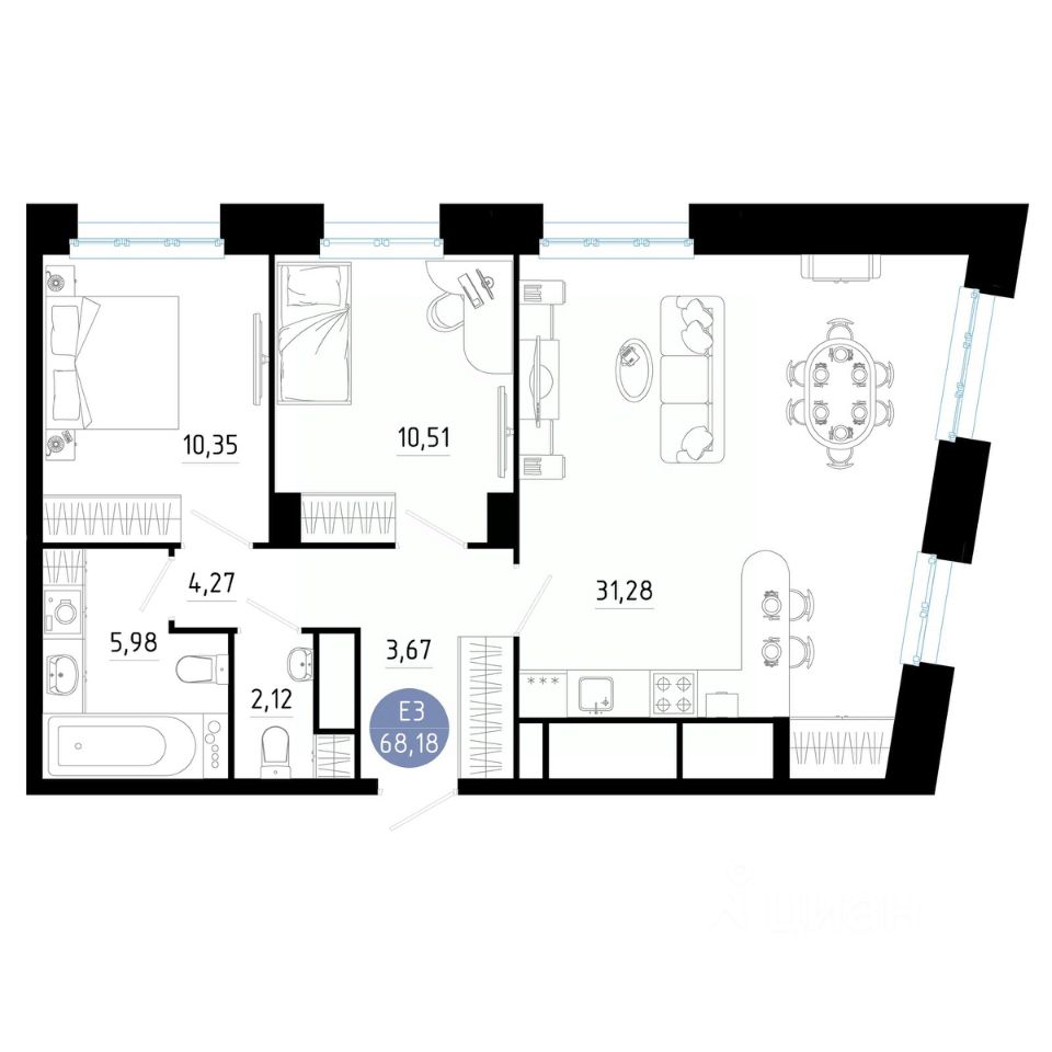 Общая площадь68,18 м2