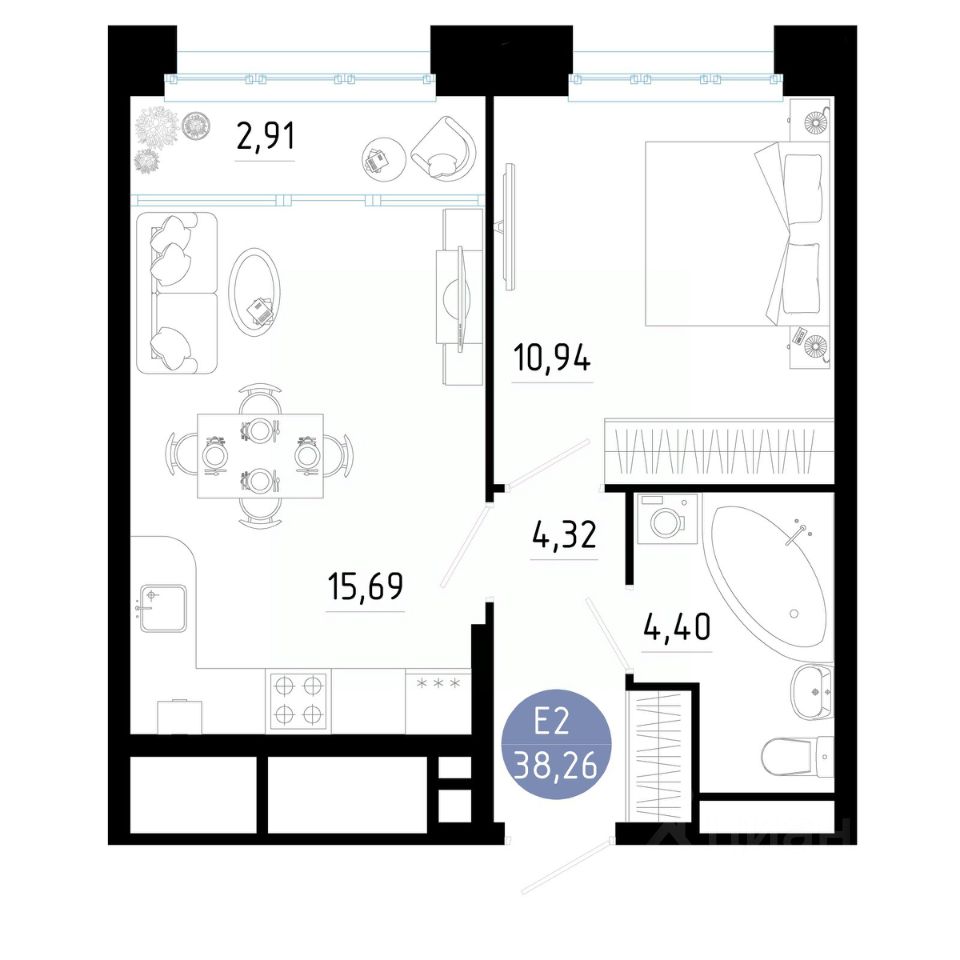Общая площадь38,26 м2