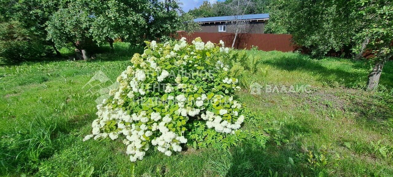 На участке в 25 соток ( часть участка в аренде) расположен отличный сад с хорошим ландшафтным решением. Вода для полива разведена по участку.