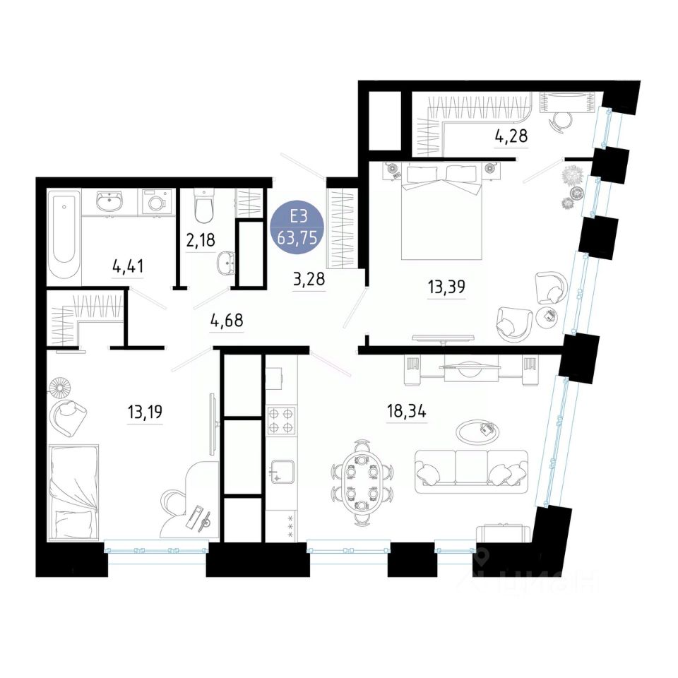 Общая площадь63,75 м2