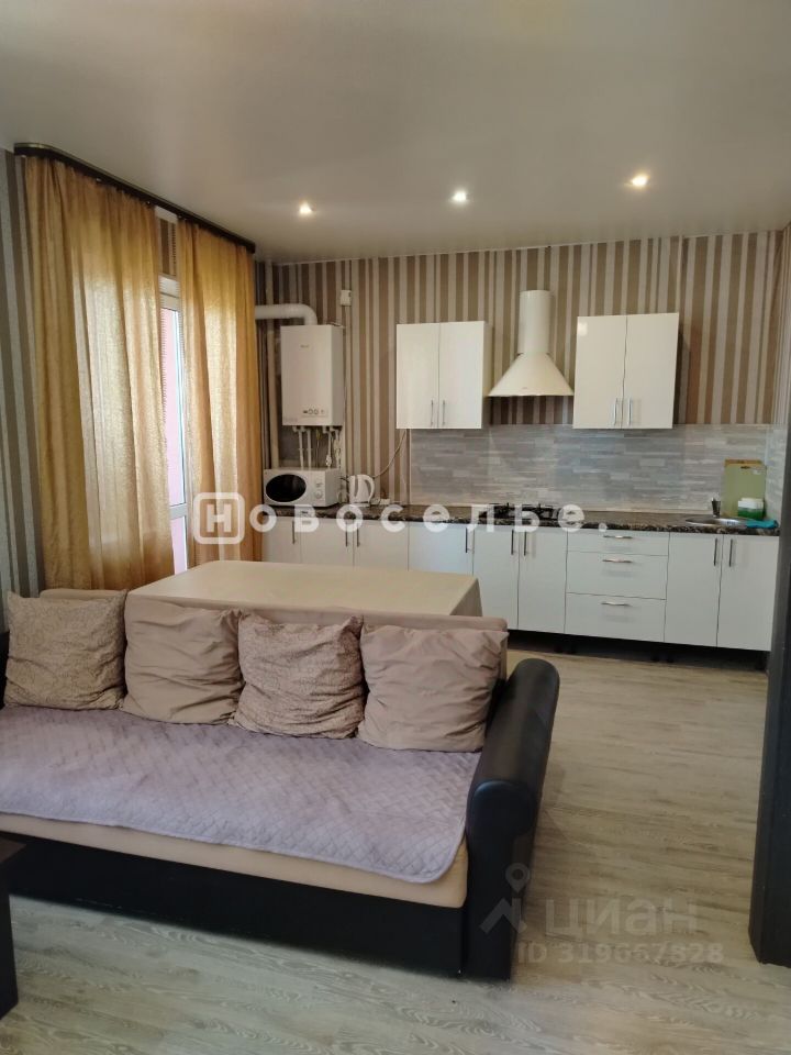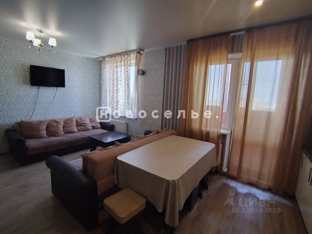 Квартира имеет современную планировку: просторные комнаты, большая кухня -гостиная 24 м2, вместительный коридор, с/у раздельный. Кухня оборудована двумя диванами, кухонным гарнитуром и обеденным столом .Имеется лоджия.