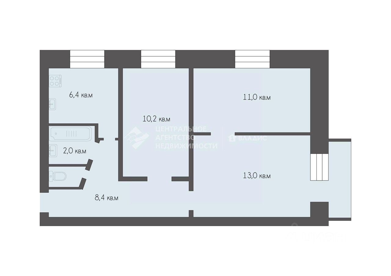 - Общая площадь: 52,9 кв. м
