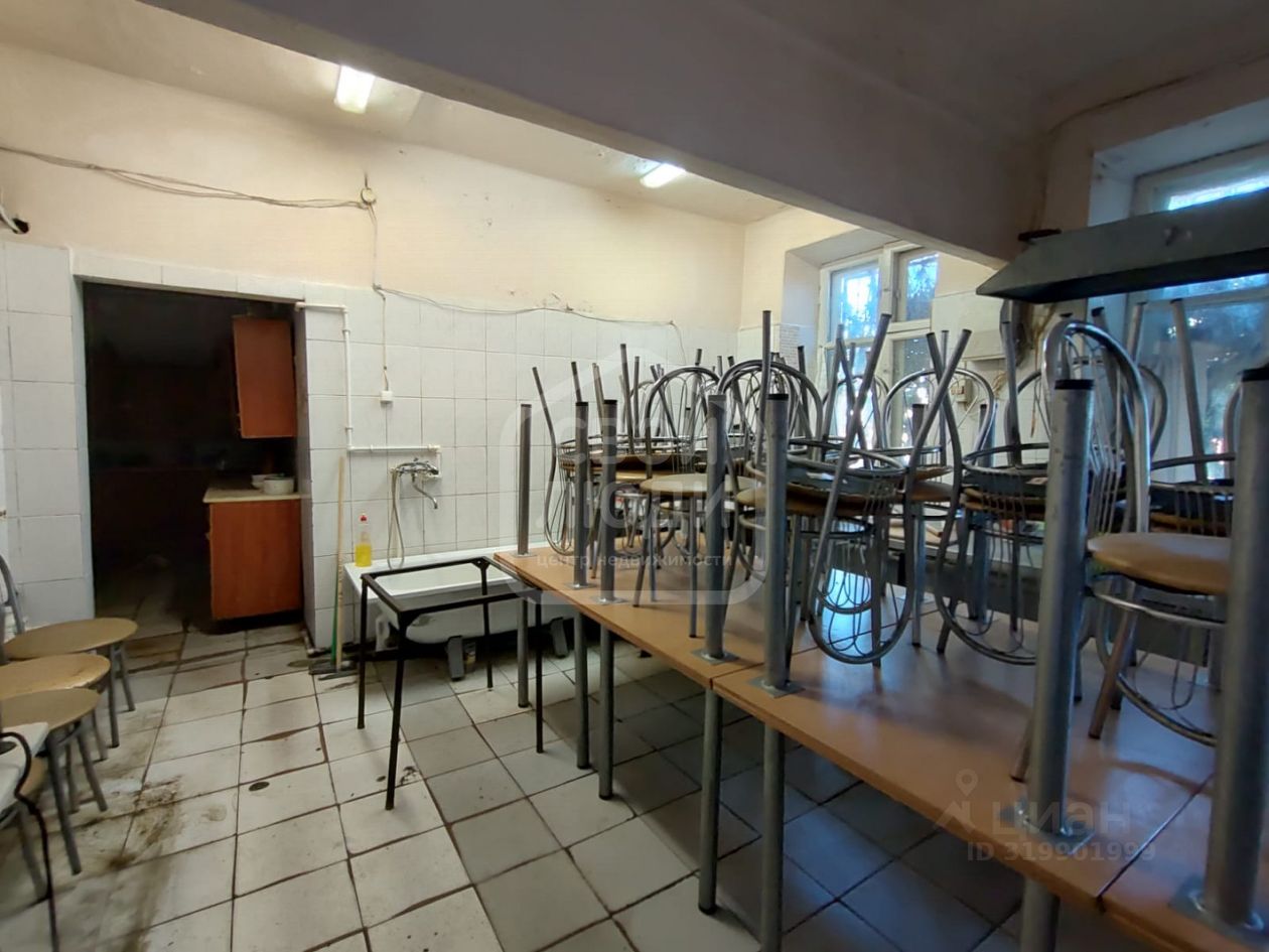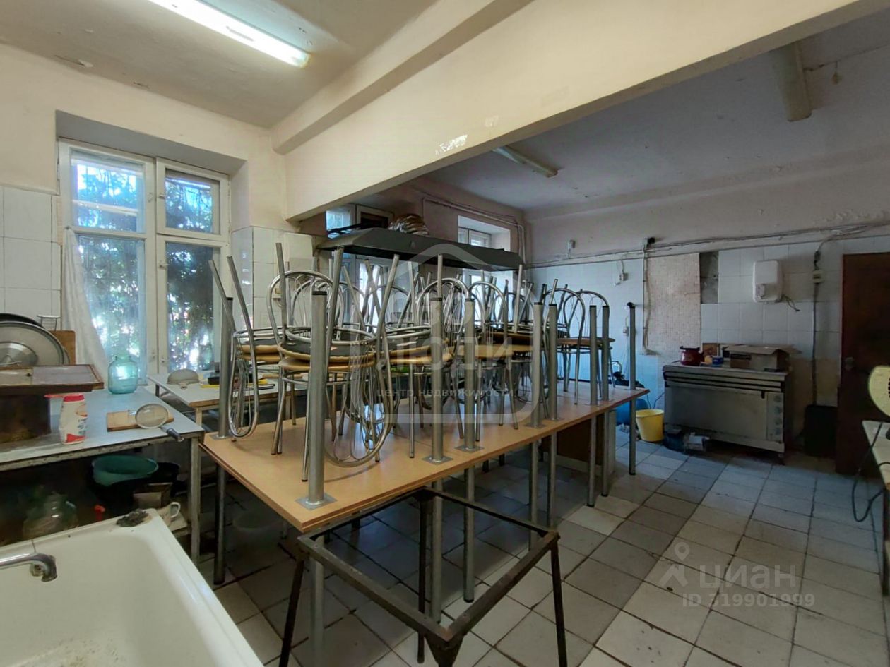 На 1-м этаже общей площадью 291,4 м.кв. размещаются: обеденный зал столовой (60,31 м.кв), пищеблок с подсобными помещениями (195,29 кв.м), торговый зал магазина (35,8 м.кв.).