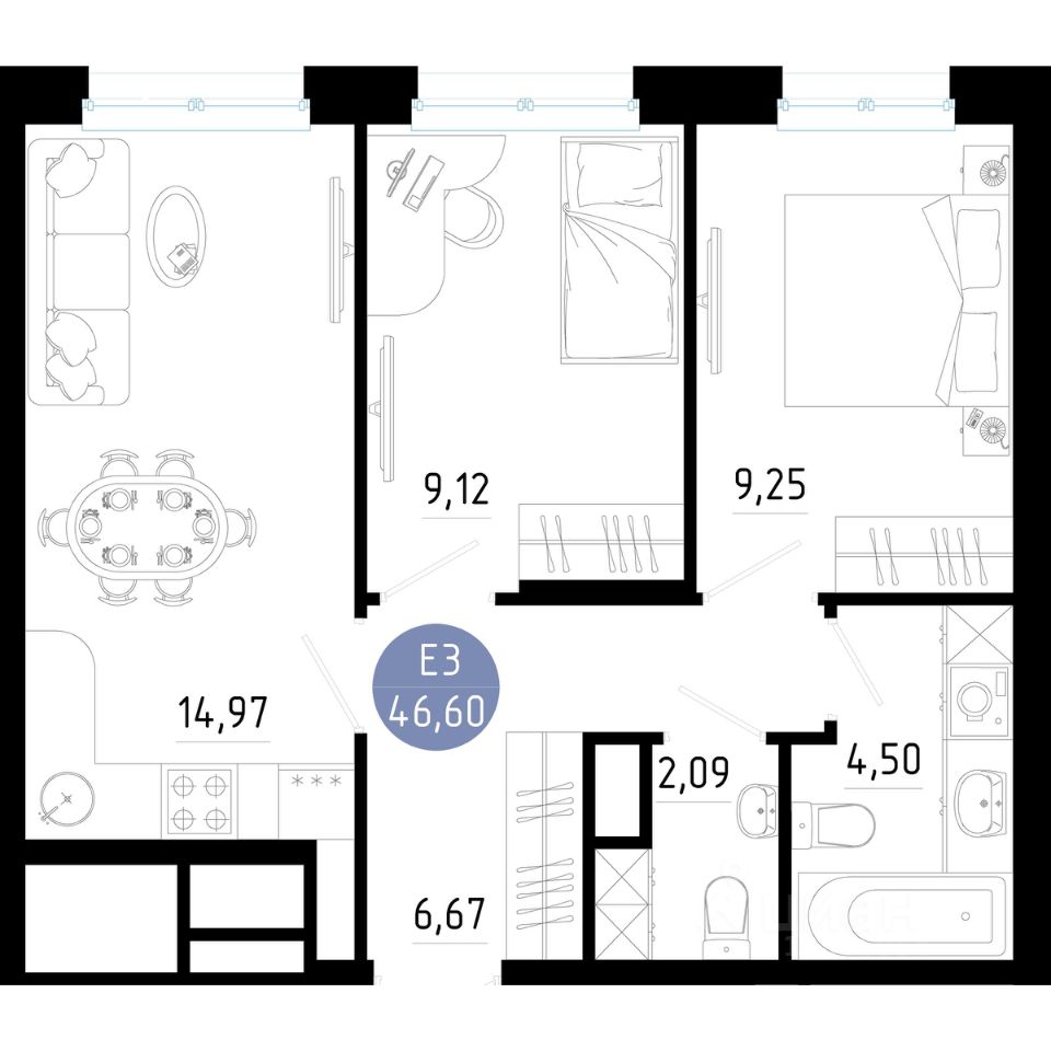Общая площадь46,6 м2