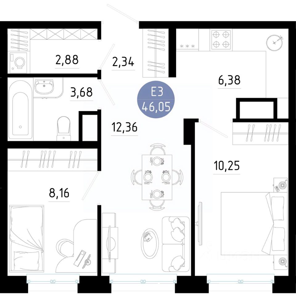 Общая площадь46,05 м2