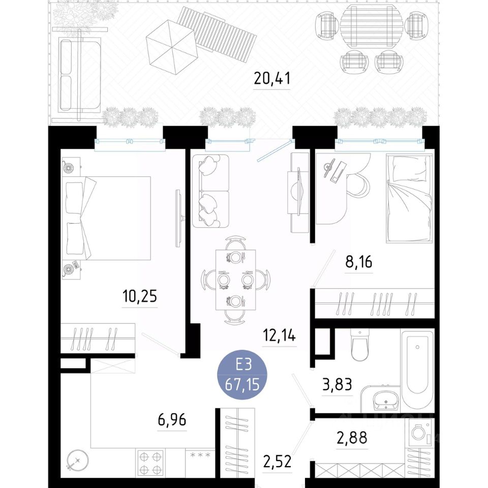 Общая площадь67,15 м2