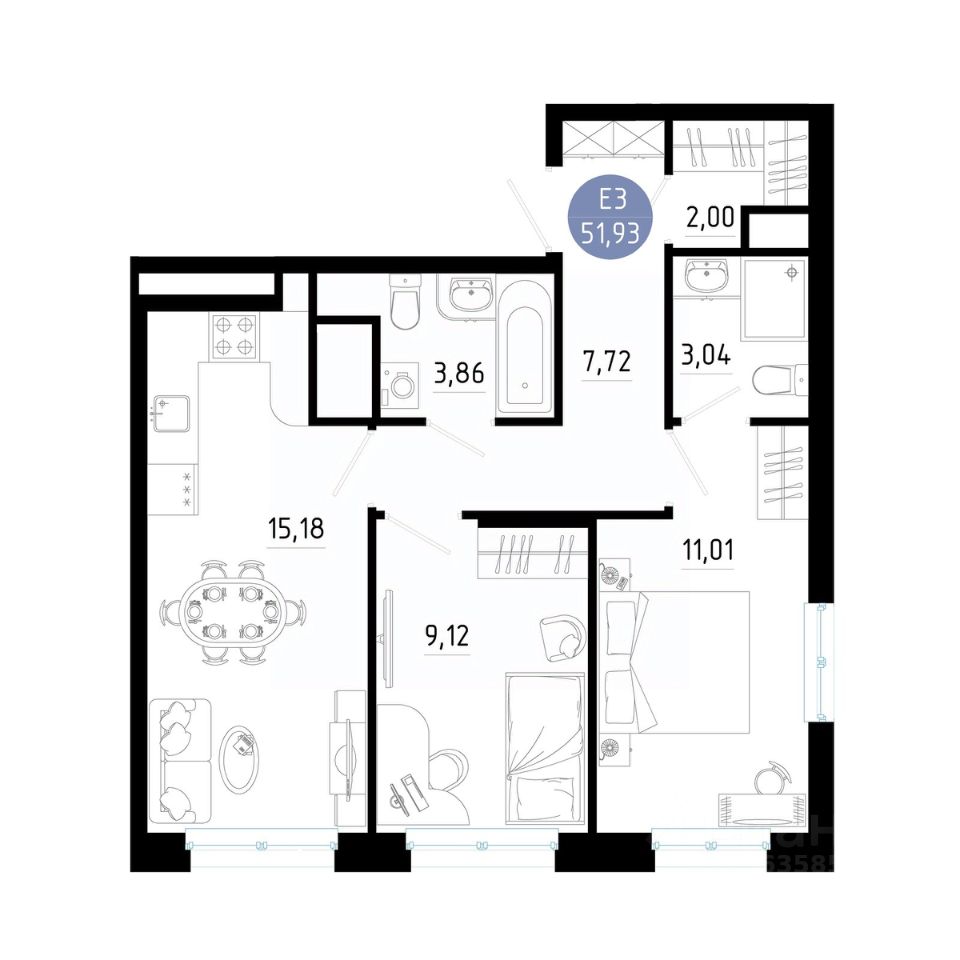 Общая площадь51,93 м2