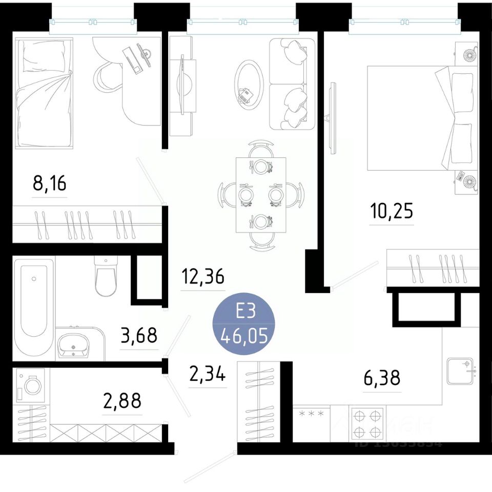 Общая площадь46,05 м2