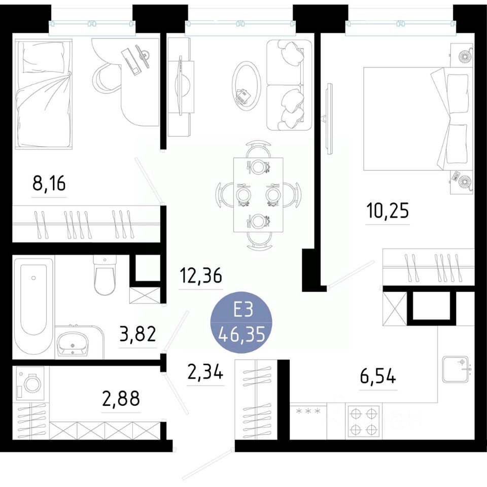 Общая площадь46,35 м2