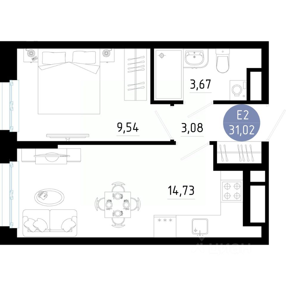 Общая площадь31,02 м2