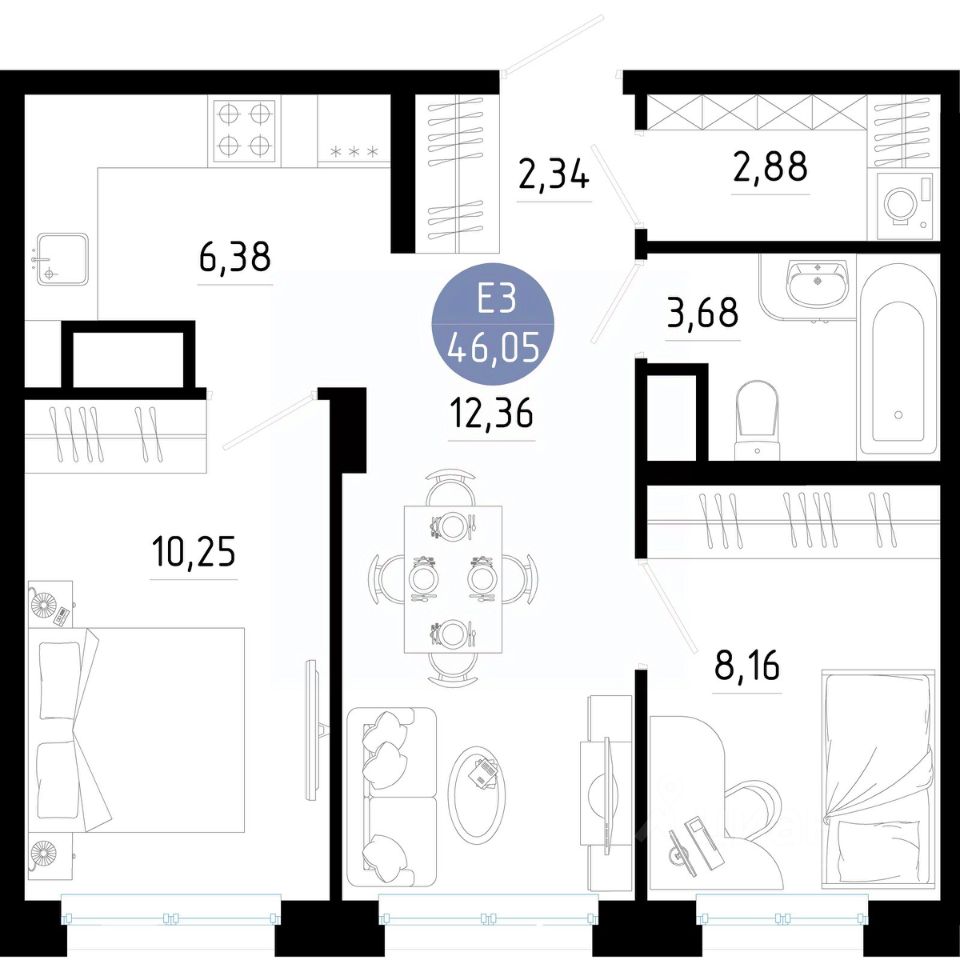 Общая площадь46,05 м2