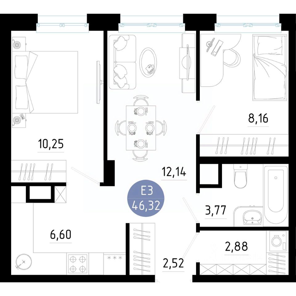Общая площадь46,32 м2