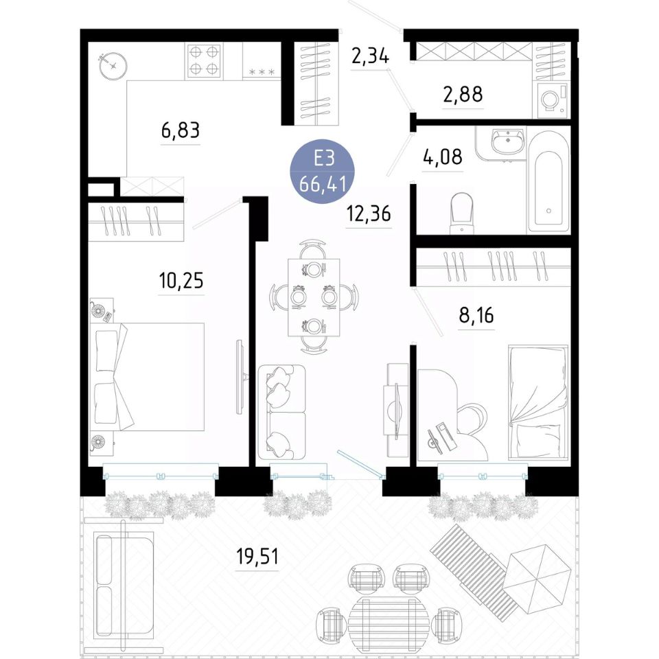 Общая площадь66,41 м2