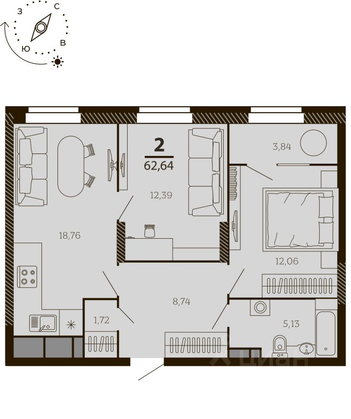 Общая площадь62,64 м2