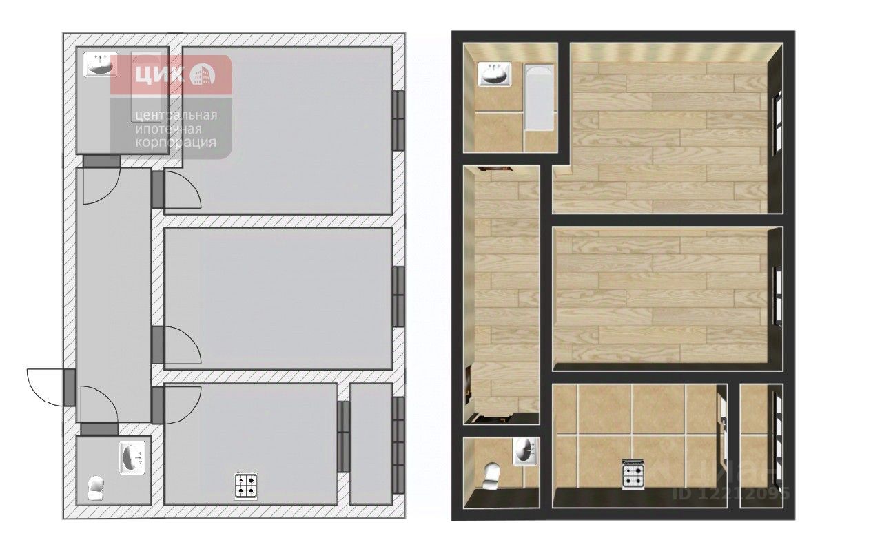 Комнаты-13.96 и 20.63м