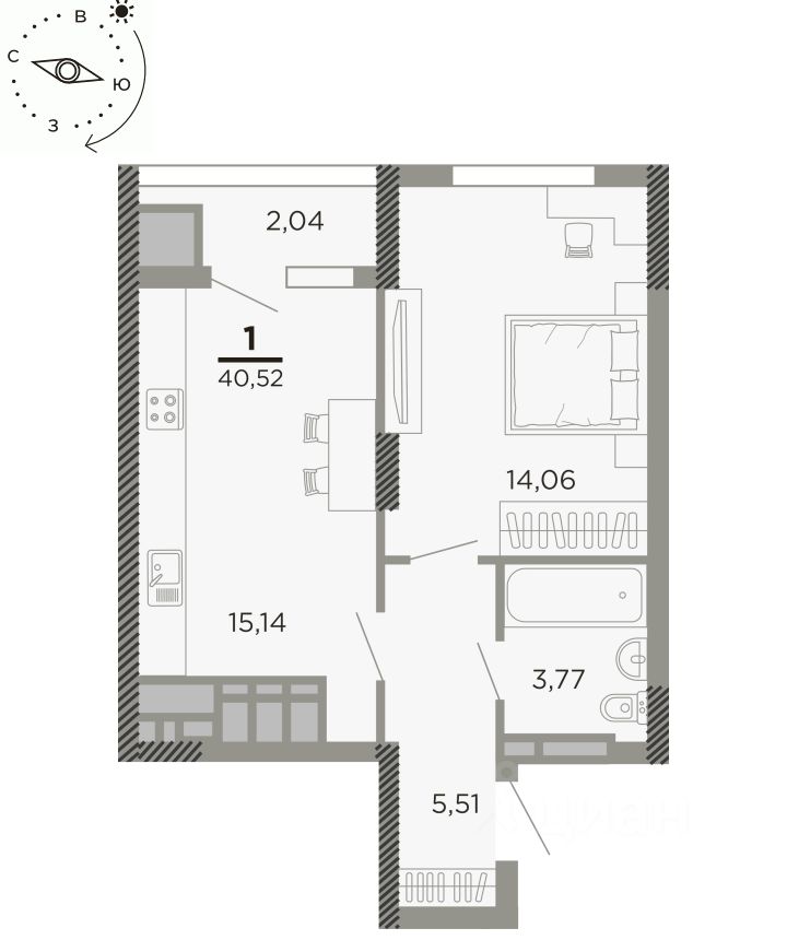 Общая площадь40,52 м2