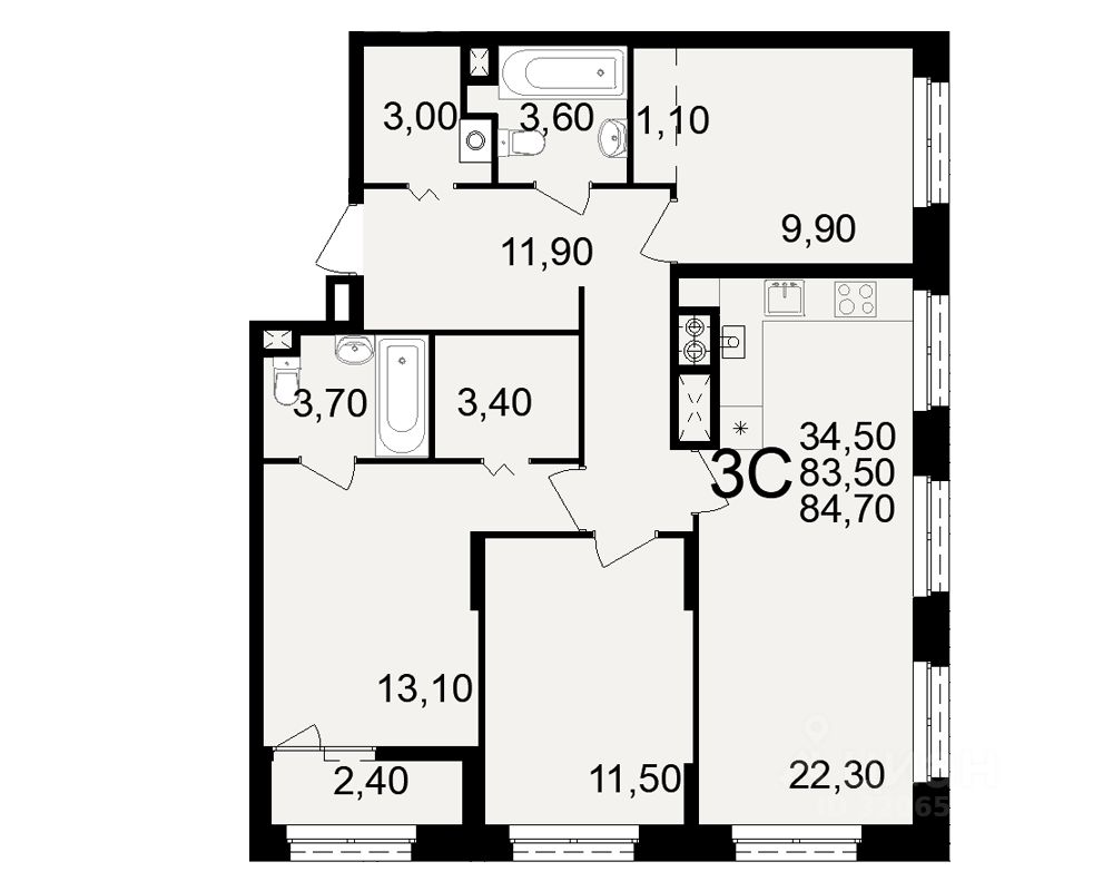 Черновая отделка квартиры - улучшенная предчистовая штукатурка стен и стяжка пола. Потолок h - 2.7 м. Качественная металлическая входная дверь и окна ПВХ не требуют замены. Отличная планировка для большой семьи: кухня-гостиная 22,3 м2 с возможностью зонирования. Просторные большие спальни, большой квадратный холл - 12 метров. Каждый метр в квартире максимально продуман.
