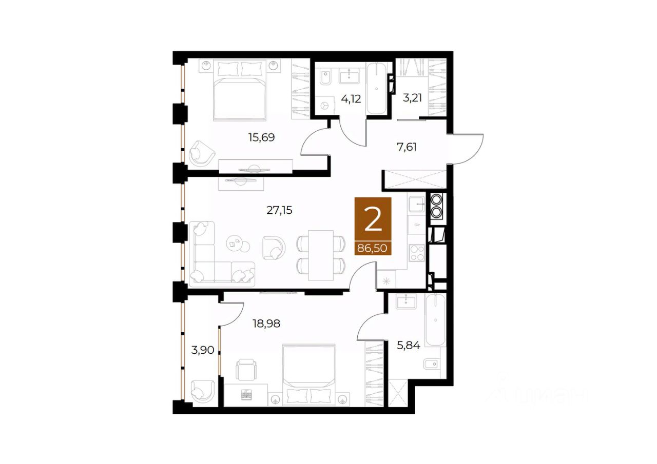 Общая площадь86,5 м2