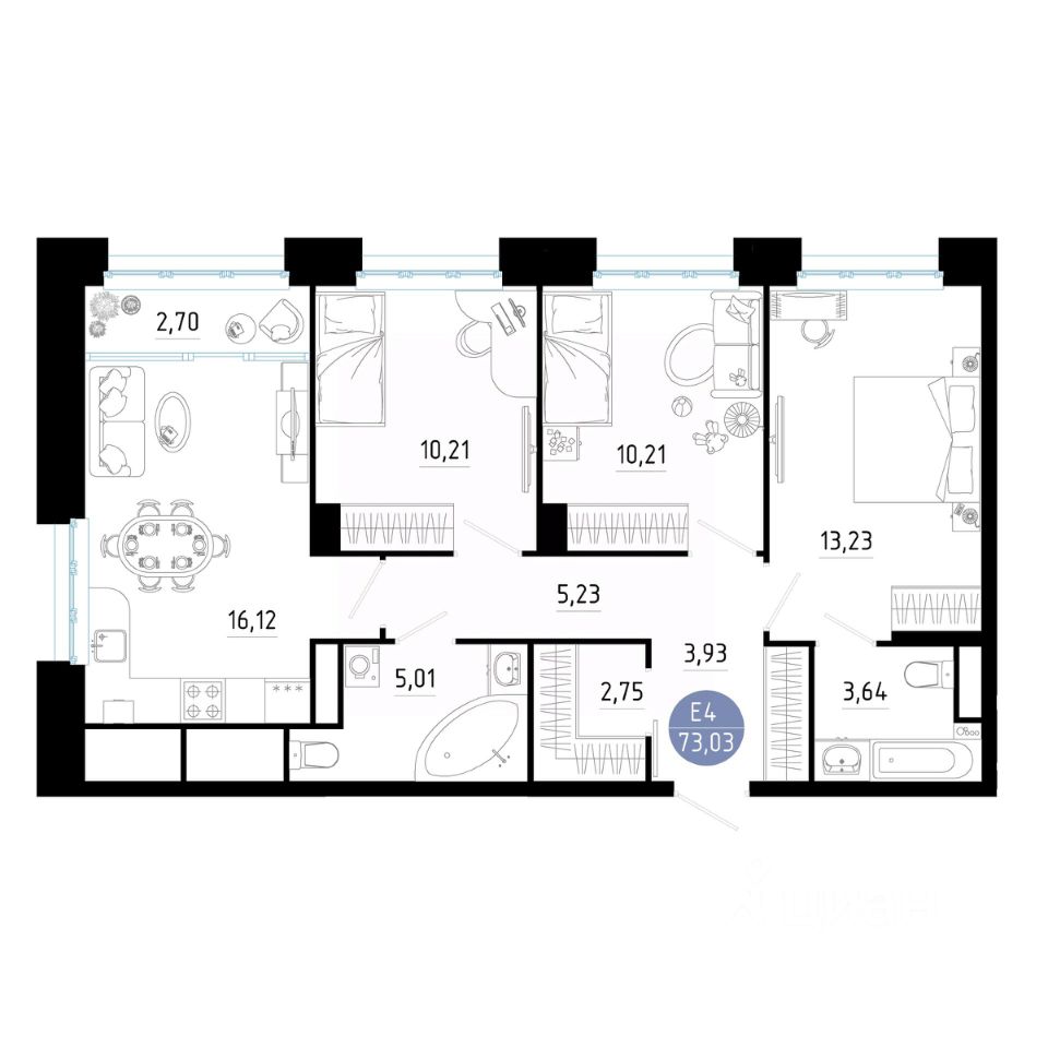 Общая площадь73,03 м2