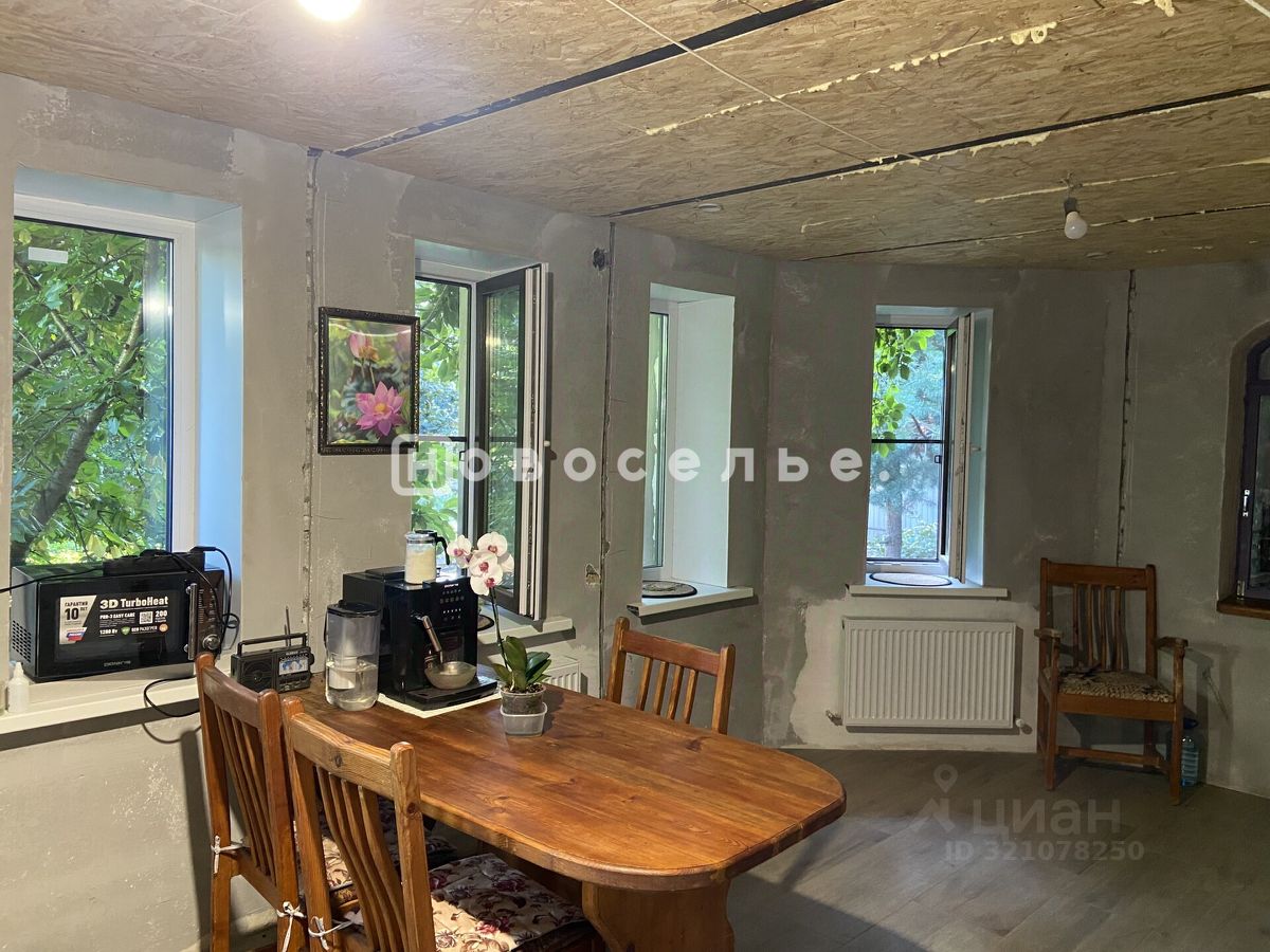 В доме полностью обновили систему отопления: установили новый котел и радиаторы, заменили окна. На первом этаже сделали стяжку пола и обновили электропроводку. Ремонт выполнен частично.