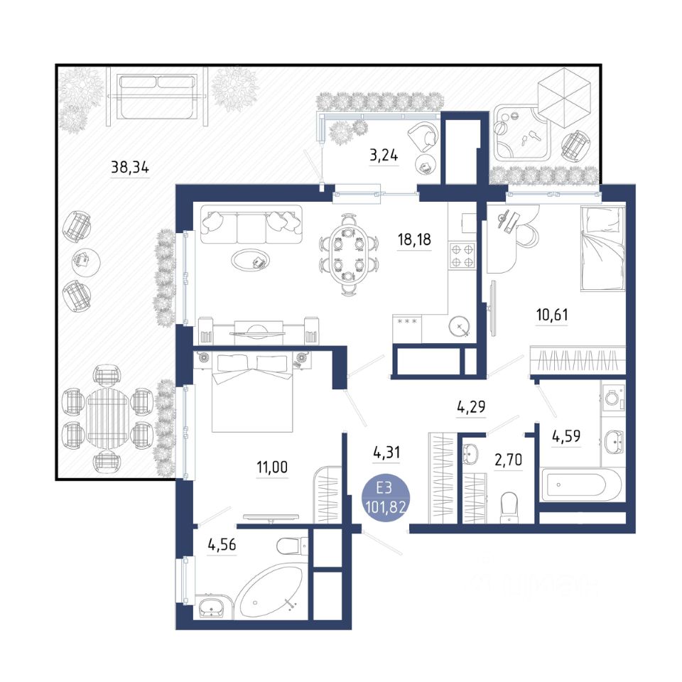 Общая площадь101,82 м2