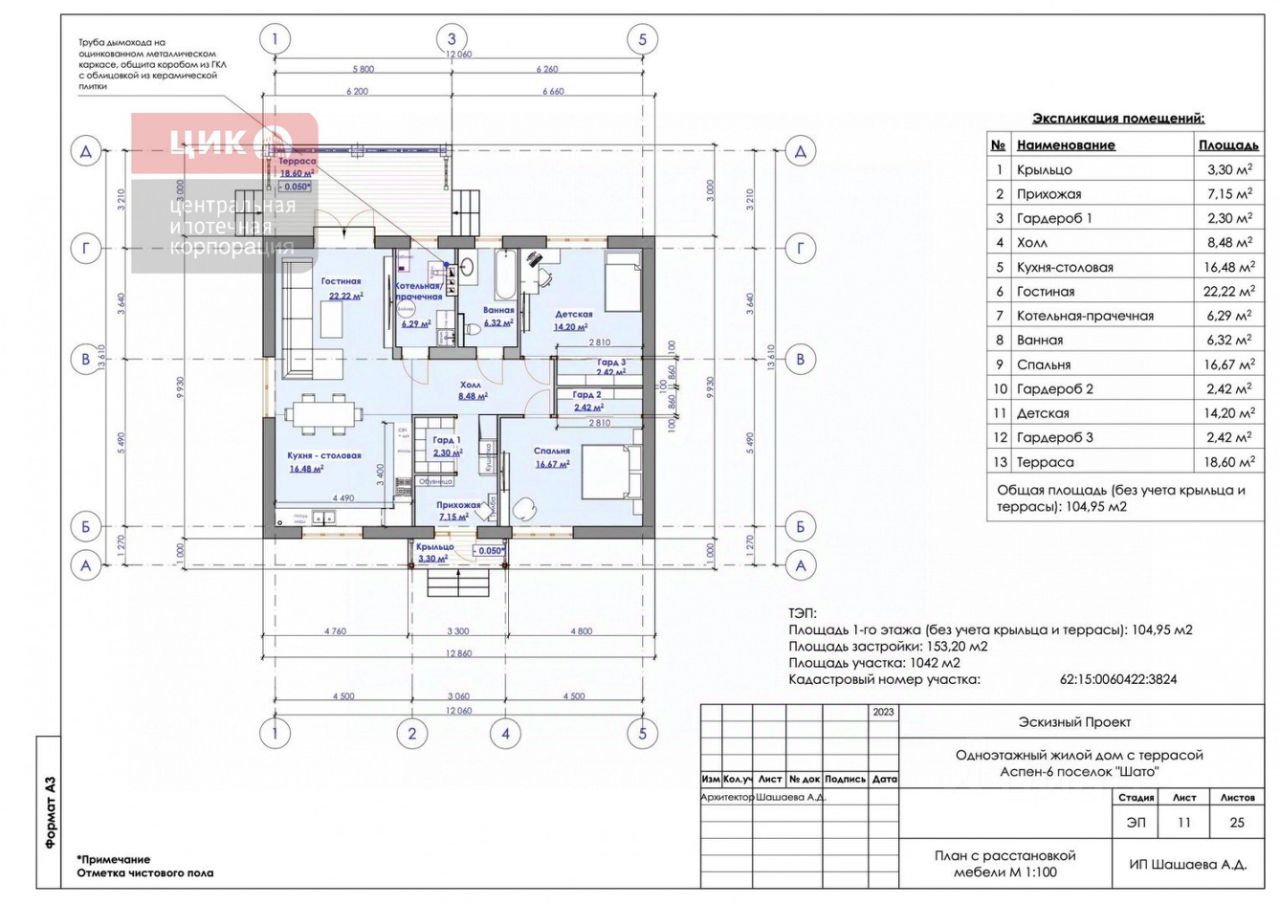 Есть проект дома, а так же возможность посмотреть этот дом в построенном виде (планировка и дом есть на фото)