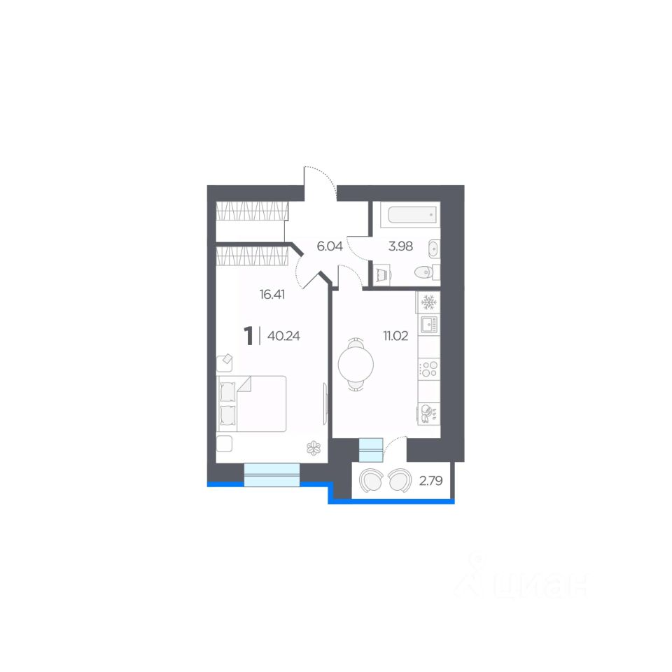 Общая площадь40,24 м2