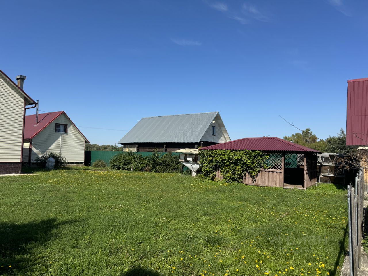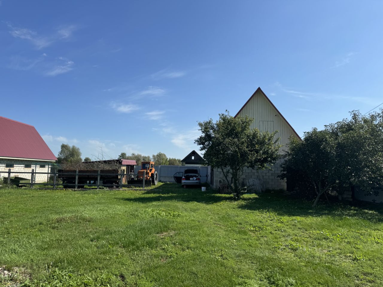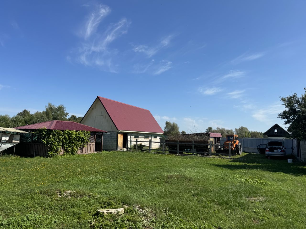На участке большой сарай из ГББ и большой гараж с ямой, и большая беседка!