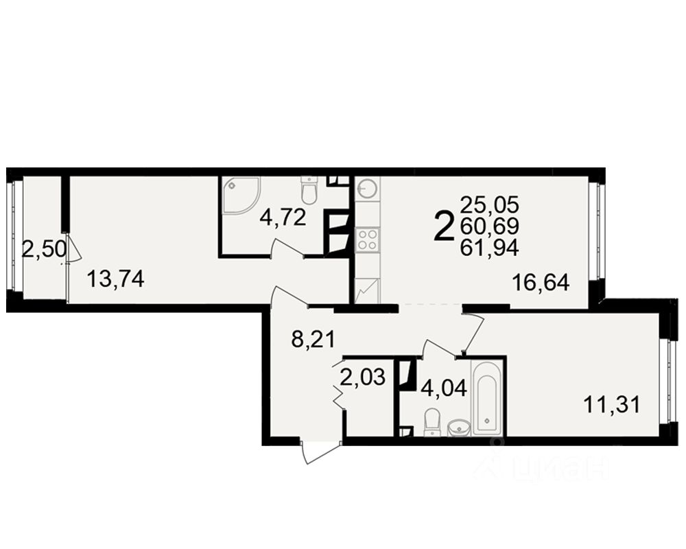 Общая площадь60,69 м2