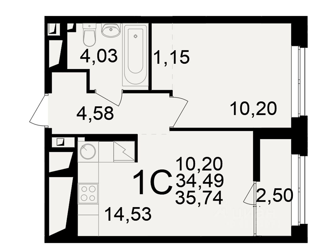 Общая площадь34,49 м2