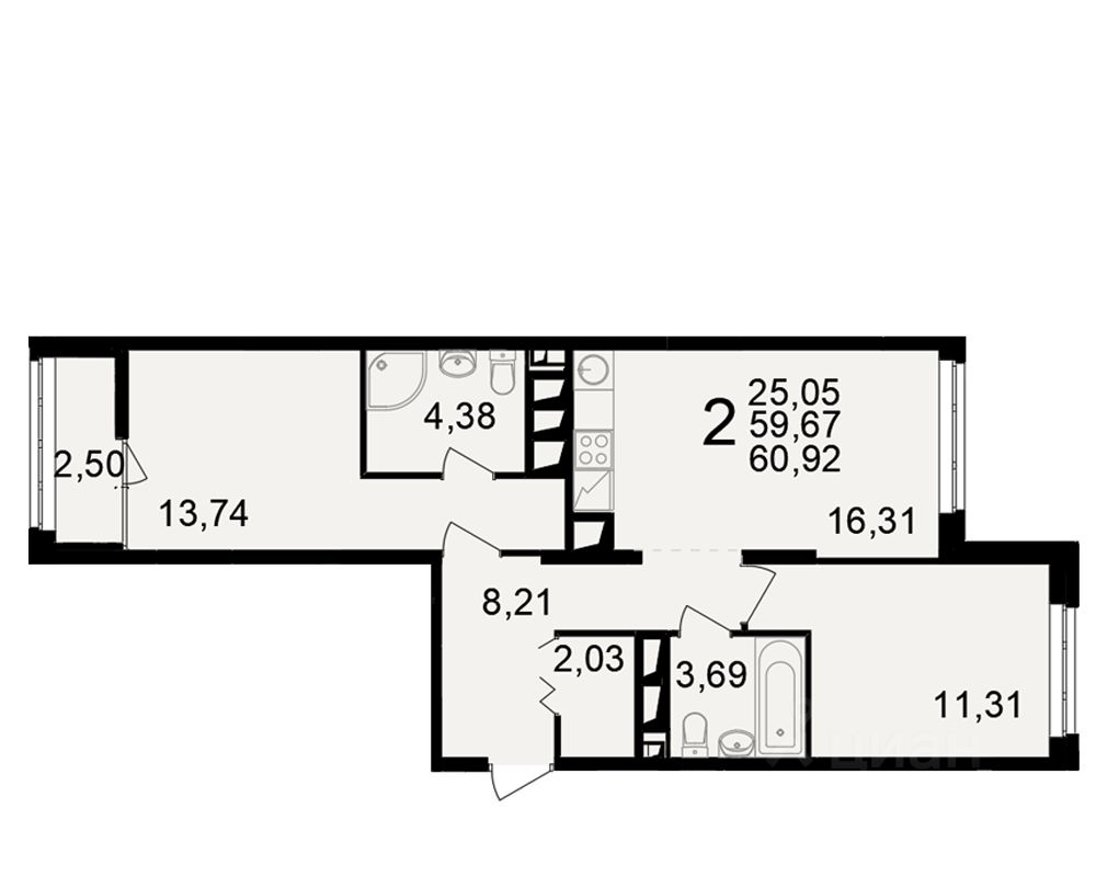 Общая площадь59,67 м2