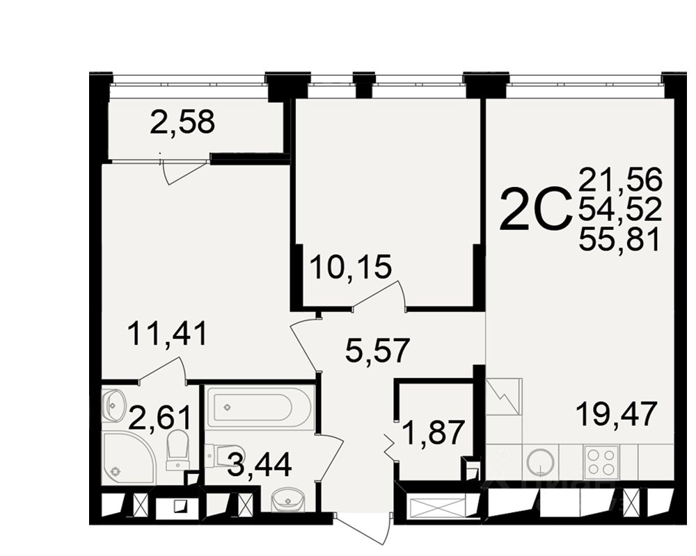 Общая площадь54,52 м2