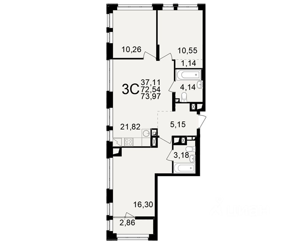 Общая площадь72,54 м2