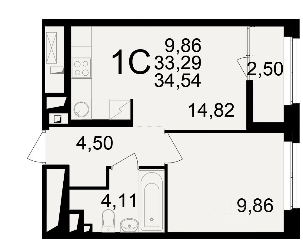 Общая площадь33,29 м2