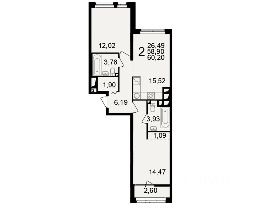 Общая площадь58,9 м2