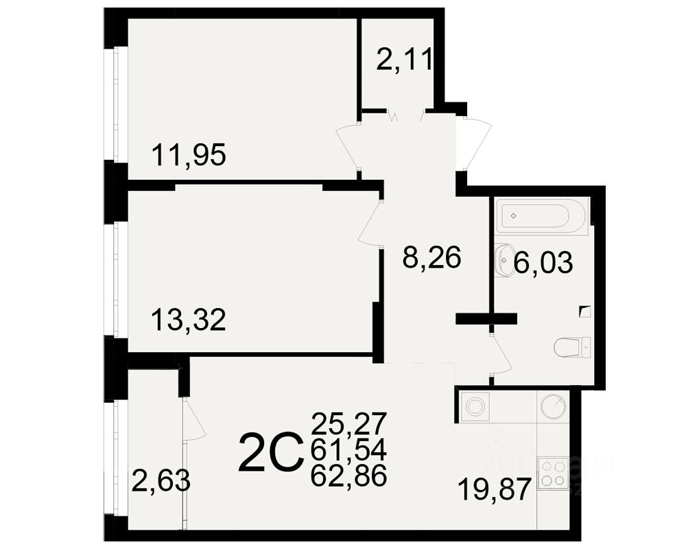 Общая площадь61,54 м2