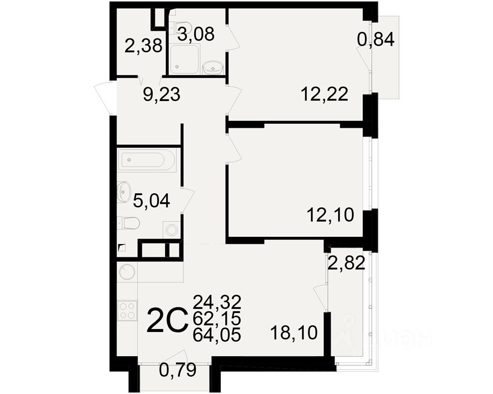 Общая площадь62,15 м2