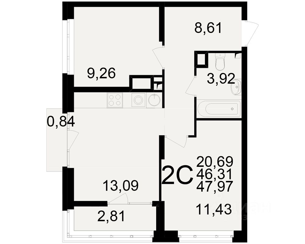Общая площадь46,31 м2