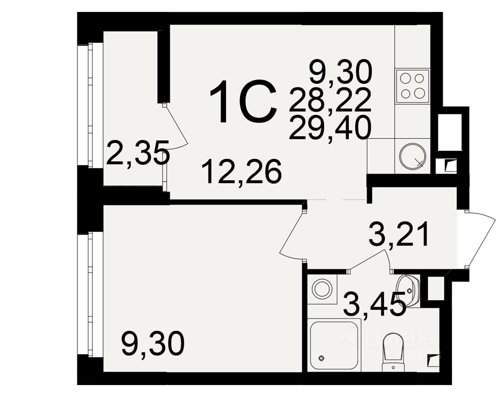 Общая площадь28,22 м2